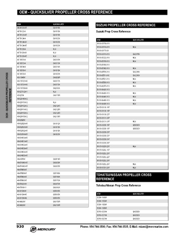 OEM - QUICKSILVER PROPELLER CROSS REFERENCE