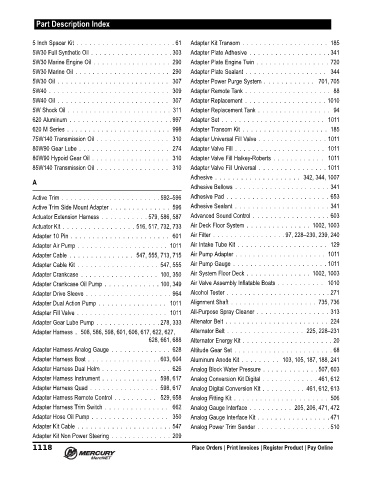 Adapter Crankcase Oil Pump . . . . . . . . . . . . . 100, 349 Air Valve Assembly Inflatable Boats . . . . . . . . . . . 1010