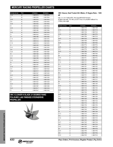 MERCURY RACING PROPELLER CHARTS 432 17 33 48-8M0017605 48-8M0017606