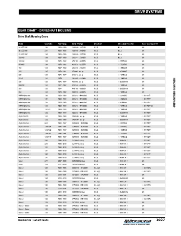 Model Gear Ratio Year Range Serial # Range Drive Gear Driven Gear/ Gear Kit Upper Gear Repair Kit
