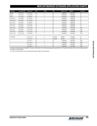 Length (ft/m) Current MPH/KPH Propeller Size Matl Blades Style Quicksilver P/N OEM P/N Hub System