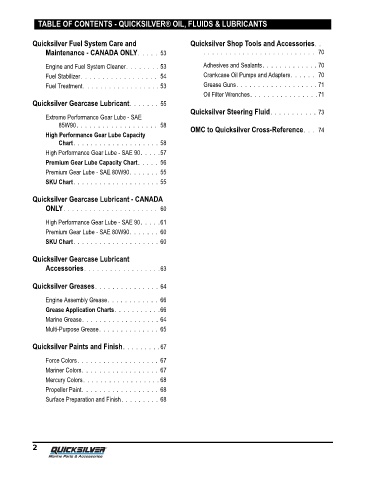 TABLE OF CONTENTS - QUICKSILVER® OIL, FLUIDS & LUBRICANTS