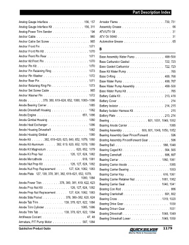 Anchor Rear Pin . . . . . . . . . . . . . . . . . . . . . . 1071 Base Water Pump . . . . . . . . . . . . . . . . . . . 499, 767