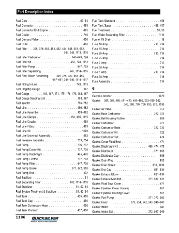 Fuel Separating Filter . . . . . . . . . . . . . 745, 1114–1116 Gasket Float Bowl Cover . . . . . . . . . . . . . . . . . . 471