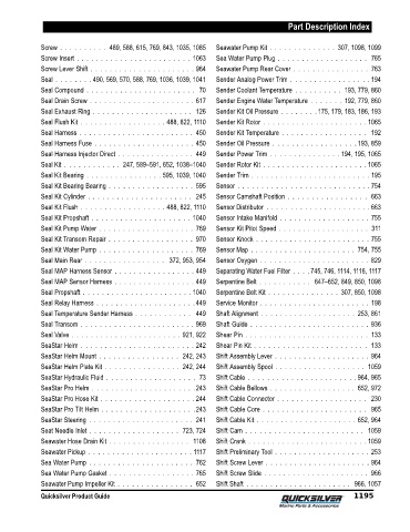 Seawater Pump Impeller Kit . . . . . . . . . . . . . . . . 652 Shift Shaft . . . . . . . . . . . . . . . . . . . . . . 966, 1057