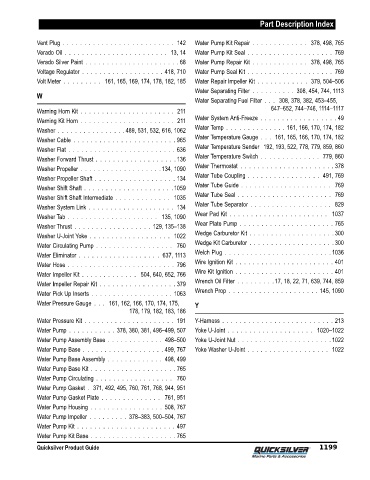 Vent Plug . . . . . . . . . . . . . . . . . . . . . . . . . . 142 Water Pump Kit Repair . . . . . . . . . . . . . 378, 498, 765