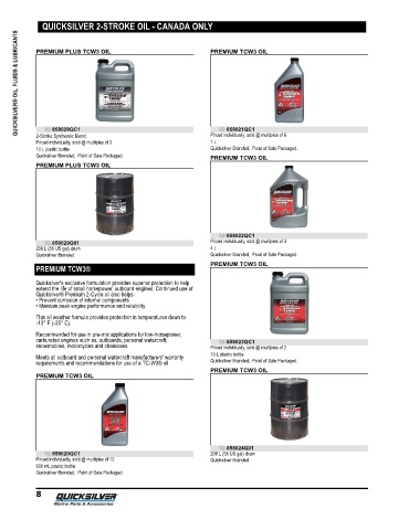 requirements and recommendations for use of a TC‑W3® oil Quicksilver Branded, Point of Sale Packaged.