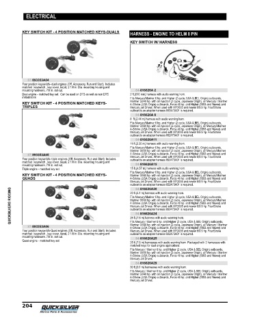 Four position keyswitch‑Quad engines (Off, Accessory, Run and Start) Includes Mercury Jet Drives. When used with MY2005 and newer 8/9.9 hp. FourStroke