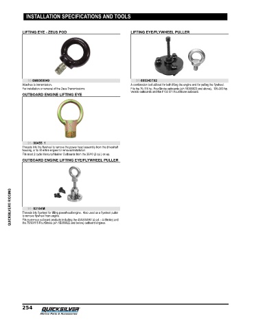 QUICKSILVER® RIGGING Threads into flywheel for lifting powerhead/engine. Also used as a flywheel puller