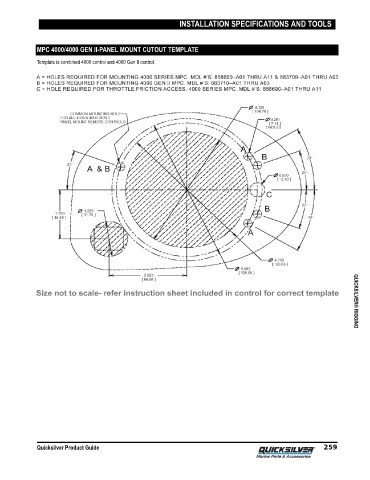 INSTALLATION SPECIFICATIONS AND TOOLS MPC 4000/4000 GEN II-PANEL MOUNT CUTOUT TEMPLATE Template is combined 4000 control and 4000 Gen II control. Quicksilver Product Guide 259 QUICKSILVER® RIGGING