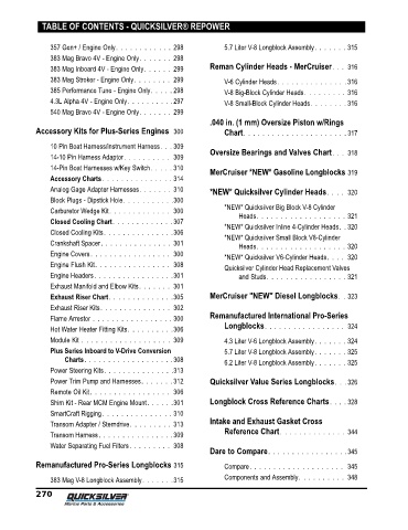 Power Trim Pump and Harnesses. . . . . . . 312 Quicksilver Value Series Longblocks. . . 326