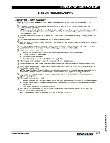 ELIGIBILITY FOR LIMITED WARRANTY ELIGIBILITY FOR LIMITED WARRANTY Quicksilver Product Guide 273 QUICKSILVER® REPOWER