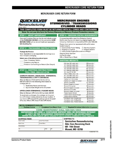 MERCRUISER CORE RETURN FORM MERCRUISER CORE RETURN FORM Quicksilver Product Guide 277 QUICKSILVER® REPOWER