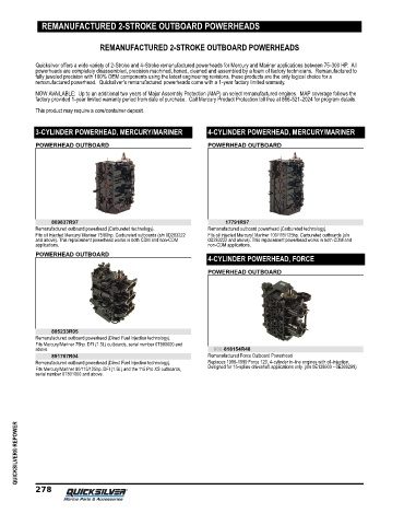 Quicksilver offers a wide variety of 2‑Stroke and 4‑Stroke remanufactured powerheads for Mercury and Mariner applications between 75‑300 HP. All