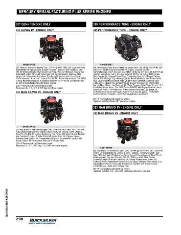 357 Alpha 4V Sterndrive Engine Only. 275 HP @ 4800 RPM, 357 Cubic Inch Fully 385 Performance Tune Bravo Sterndrive Engine Only. 350 HP @ 5200 RPM. 385
