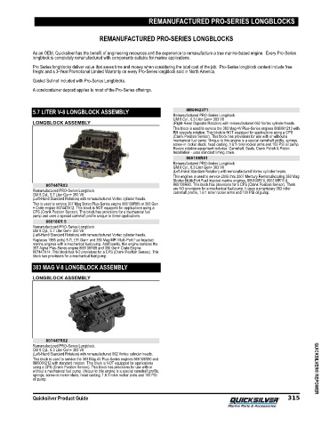 This engines is used to service 2005 thru 2007 Mercury Remanufacturing 383 Mag