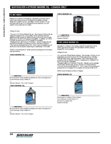 including FC‑W and FC‑W Catalyst Compatible. In addition, all 10W30 Quicksilver Branded