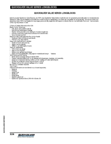 Like the popular Quicksilver Crate Engines, the 100% new Quicksilver Value Series longblocks are not converted automobile units nor remanufactured.