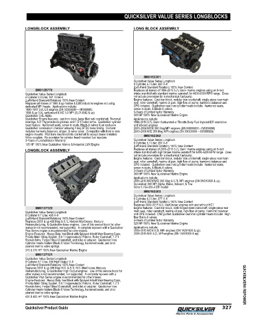 Quicksilver Engine features: cast iron block, large fillet radii crankshaft, Tri‑metal Applications include: