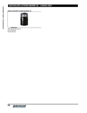 QUICKSILVER 4-STROKE MARINE OIL - CANADA ONLY QUICKSILVER® OIL, FLUIDS & LUBRICANTS 25W40 SYNTHETIC BLEND MARINE OIL 92-8M0078624 25W40 synthetic blend marine oil 208 L (55 Gal) drum Quicksilver Branded 26