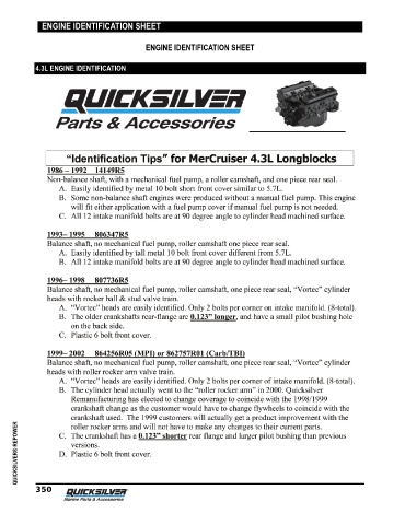 ENGINE IDENTIFICATION SHEET ENGINE IDENTIFICATION SHEET 4.3L ENGINE IDENTIFICATION QUICKSILVER® REPOWER 350