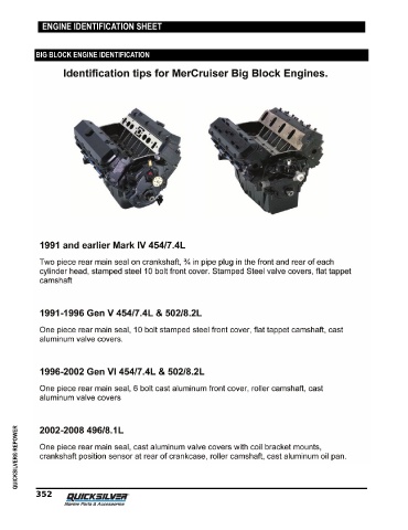 ENGINE IDENTIFICATION SHEET BIG BLOCK ENGINE IDENTIFICATION QUICKSILVER® REPOWER 352