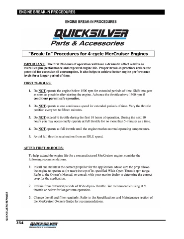ENGINE BREAK-IN PROCEDURES ENGINE BREAK-IN PROCEDURES QUICKSILVER® REPOWER 354