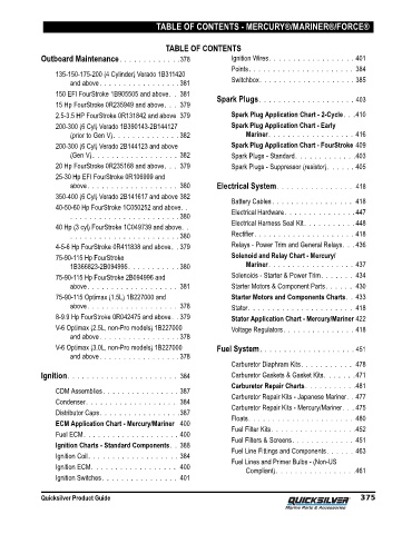 Condenser. . . . . . . . . . . . . . . . . . . 384 Carburetor Repair Kits - Mercury/Mariner. . . 475