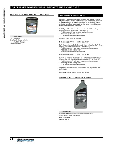 QUICKSILVER® OIL, FLUIDS & LUBRICANTS TRANSMISSION AND GEAR OIL