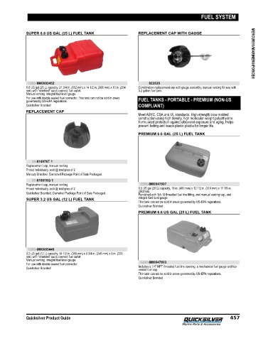 Quicksilver Branded Includes a 1/4" NPT threaded fuel line opening, a mechanical fuel gauge and top