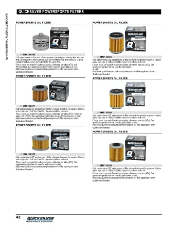 http://www.quicksilver‑products.com/powersports‑oil‑filter‑application‑chart and a high rate of oil flow. Ideal for high‑end synthetic motor oil.