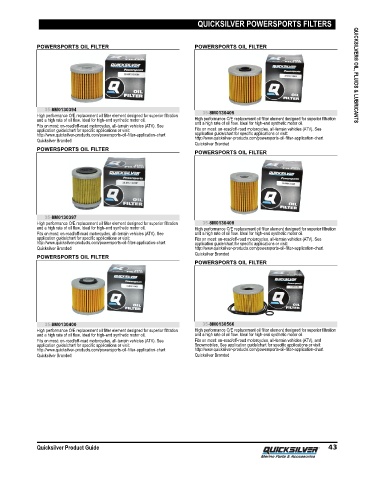 POWERSPORTS OIL FILTER POWERSPORTS OIL FILTER QUICKSILVER® OIL, FLUIDS & LUBRICANTS