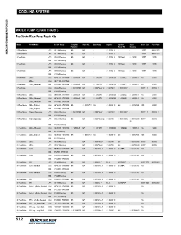 MERCURY®/MARINER®/FORCE® WATER PUMP REPAIR CHARTS Complete Upper Kit Base Assy Impeller Impeller Upper Insert Cup Face Plate