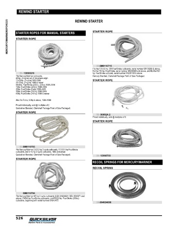 MERCURY®/MARINER®/FORCE® STARTER ROPES FOR MANUAL STARTERS STARTER ROPE