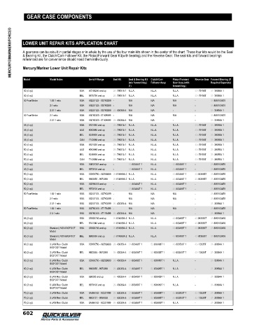 MERCURY®/MARINER®/FORCE® LOWER UNIT REPAIR KITS APPLICATION CHART