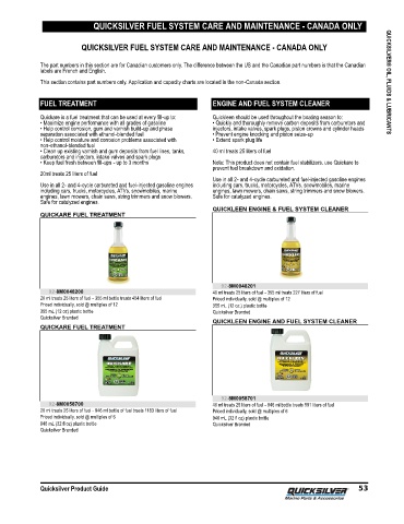 QUICKSILVER FUEL SYSTEM CARE AND MAINTENANCE - CANADA ONLY