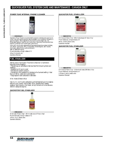 QUICKSILVER FUEL SYSTEM CARE AND MAINTENANCE - CANADA ONLY