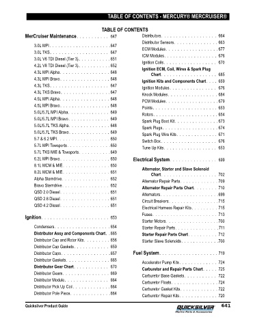 MerCruiser Maintenance. . . . . . . . . . . 647 Distributors. . . . . . . . . . . . . . . . . . . 664
