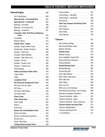 Push Rods. . . . . . . . . . . . . . . . . . . 900 Transom Gaskets/Seals. . . . . . . . . . . . 969