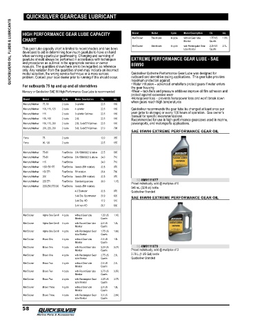 QUICKSILVER® OIL, FLUIDS & LUBRICANTS HIGH PERFORMANCE GEAR LUBE CAPACITY EXTREME PERFORMANCE GEAR LUBE - SAE 1.66L