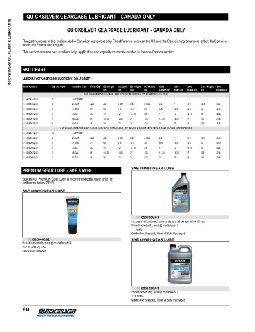 QUICKSILVER® OIL, FLUIDS & LUBRICANTS The part numbers in this section are for Canadian customers only. The difference between the US and the Canadian part numbers is that the Canadian
