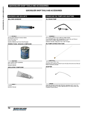 QUICKSILVER® OIL, FLUIDS & LUBRICANTS ADHESIVES AND SEALANTS CRANKCASE OIL PUMPS AND ADAPTERS