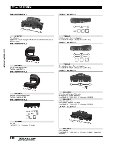 Fits MCM GM V‑6 (262 cid) engines with dry joint exhaust (s/n 0M615000 and up) Fits MCM/MIE GM V‑8 (305 & 350 cid) engines (1977‑1982)