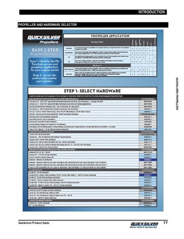 INTRODUCTION PROPELLER AND HARDWARE SELECTOR QUICKSILVER® PROPELLERS Quicksilver Product Guide 77