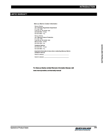 INTRODUCTION LIMITED WARRANTY QUICKSILVER® PROPELLERS Quicksilver Product Guide 79