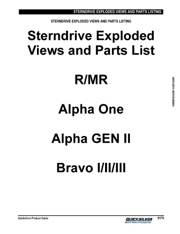 STERNDRIVE EXPLODED VIEWS AND PARTS LISTING STERNDRIVE EXPLODED VIEWS AND PARTS LISTING MERCURY® MERCRUISER® Quicksilver Product Guide 975