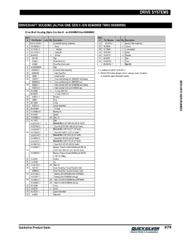 DRIVE SYSTEMS DRIVESHAFT HOUSING (ALPHA ONE GEN II -S/N 0D469859 THRU 0K999999) MERCURY® MERCRUISER® Quicksilver Product Guide 979
