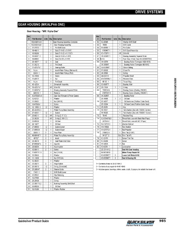 DRIVE SYSTEMS GEAR HOUSING (MR/ALPHA ONE) MERCURY® MERCRUISER® Quicksilver Product Guide 985