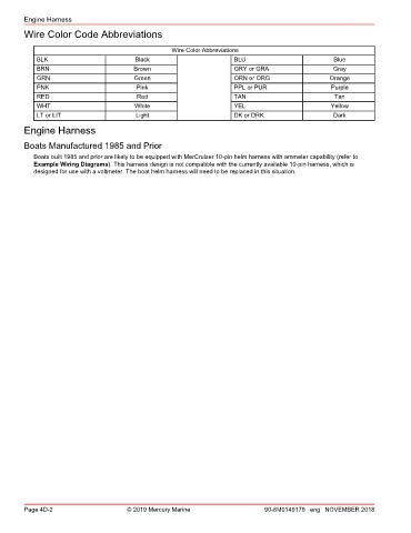 Page 4D-2 © 2019 Mercury Marine 90-8M0149179 eng NOVEMBER 2018
