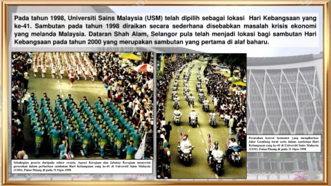 Pada tahun 1998, Universiti Sains Malaysia (USM) telah dipilih sebagai lokasi Hari Kebangsaan yang